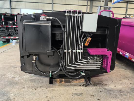 Задний бункер: Оснащен задней частью, что делает мусоровоз типом с задней загрузкой, который оснащен скребком и задвижной пластиной внутри для сбора мусора, также может подниматься для выгрузки мусора.