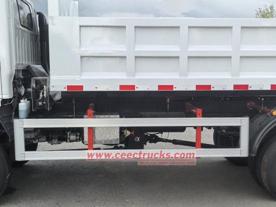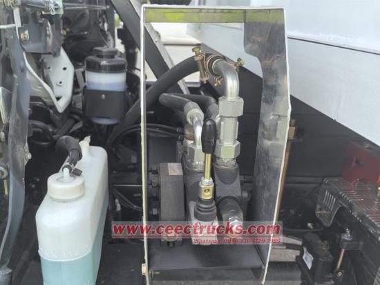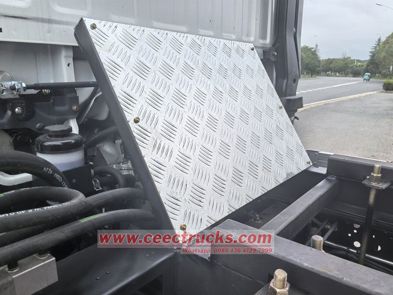 Самосвал Isuzu ELF имеет высокопрочную стальную раму, отличается высокой устойчивостью к скручиванию, отличной грузоподъёмностью и может адаптироваться к неровным дорогам строительных площадок. Система разгрузки кузова оснащена гидроцилиндрами двойного действия с высокой подъёмной силой и максимальным углом наклона грузового отсека 60°, что обеспечивает быструю и тщательную разгрузку материалов. Задняя дверь оснащена автоматической блокировкой, предотвращающей случайное открытие во время транспортировки и повышающей безопасность.