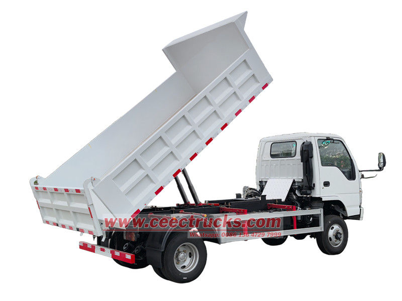 Малый самосвал Isuzu состоит из шасси, гидравлической системы подъёма, грузового отсека и системы управления. Грузовой отсек сварен из высокопрочных стальных листов, а задняя часть оснащена автоматическим запирающим крюком для обеспечения герметичности во время транспортировки. Гидравлическая система состоит из масляного насоса, многоступенчатого гидроцилиндра, регулирующего клапана и топливного бака. Подъём и опускание грузового отсека управляются джойстиком из кабины.