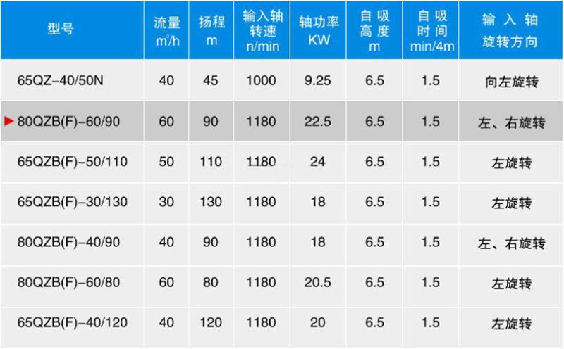 Водяной насос 80QZF-6090S — это самовсасывающий центробежный насос, специально разработанный для использования в водовозах и другой специализированной технике. Его основные параметры включают: расход 60 м³/ч, напор 90 м, высота самовсасывания 6,5 м и время самовсасывания 1,5 мин. Он изготовлен из чугуна и имеет внешнюю самовсасывающую конструкцию с перемешиванием. Приводимый в действие от вала отбора мощности транспортного средства, он подходит для перекачивания чистой воды.