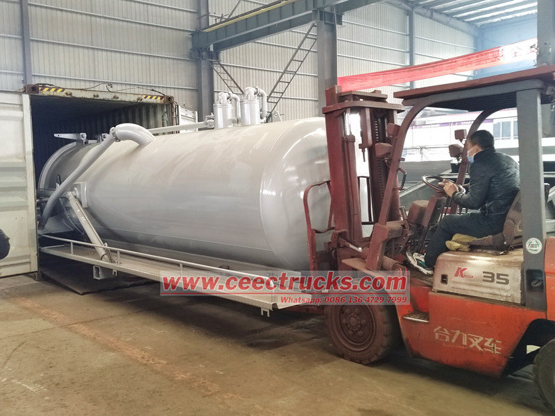 Корпус цистерны для сбора фекальных вод объёмом 3000 галлонов, изготовленный по индивидуальному заказу, состоит из вакуумного бака, вакуумного насоса, гидравлической системы, трубопроводов, клапанов и устройств управления. Он отличается компактной конструкцией и широким набором функций. Корпус цистерны изготовлен из высококачественной стали, устойчивой к давлению и коррозии. Импортный вакуумный насос обеспечивает мощное всасывание и высокую эффективность. Гидравлическая система позволяет поднимать корпус цистерны и открывать заднюю крышку, что обеспечивает быструю и лёгкую разгрузку.