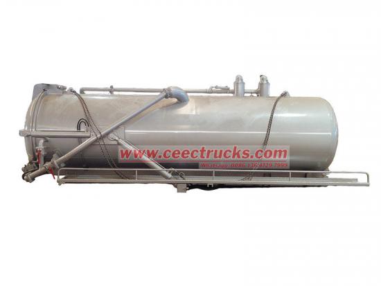 The Кузов цистерны для сбора фекальных вод емкостью 3000 галлонов Закруглённая форма обеспечивает равномерное распределение нагрузки и прочную конструкцию. Корпус цистерны может быть гидравлически поднят, а задняя крышка открывается, что обеспечивает эффективную и удобную разгрузку, делая её пригодной для различных условий эксплуатации.