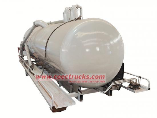 Индивидуально изготовленный корпус цистерны для сбора фекальных вод объемом 3000 галлонов (также называемый надстройкой автоцистерны с насосом для шлама, комплектом для вакуумного насоса для откачки шлама объемом 12 куб. м, комплектом верхней части кузова вакуумной ассенизационной машины, верхней частью кузова вакуумной ассенизационной машины для сбора фекальных вод объемом 3000 галлонов, верхней частью кузова автоцистерны для сбора фекальных вод) Устанавливается на шасси для очистки и сбора жидкостей, таких как грязная вода, шлам, септик, сырая нефть. Подходит для очистки канализации, выгребных ям, сточных ям, луж и т. д. Широко применяется в сфере охраны окружающей среды и санитарии.