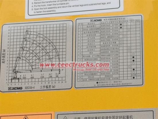 Верхняя часть оснащена 4-секционным краном с прямой стрелой XCMG MSQS200-4, с максимальным грузоподъемным весом 8 тонн и подъемным моментом 20 тонн. · м. Основные параметры следующие: