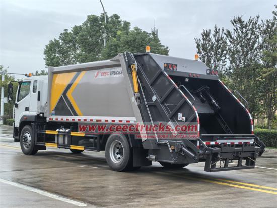 Rear tilting device for 360L and 1100L metal binsМусоровоз FOTON 16CBM — это сверхпрочное оборудование для переработки отходов, созданное на базе шасси грузового автомобиля модели 1086VLPHK-0FDA01 с колесной формулой 4x2. Грузовик с задней загрузкой FOTON AUMAN Оснащен дизельным двигателем Cummins ISDe270 30 мощностью 270 л.с., турбонаддувом и промежуточным охлаждением, рабочим объемом 6700 куб. см, что обеспечивает большую мощность для работы в горах. В сочетании с механической коробкой передач ZF с 8 передачами, передняя ось весит 4,2 тонны, задняя ось – 9 тонн. Шины 295/80R22.5 обеспечивают высокую грузоподъемность. Кузов уплотнителя объемом 16 куб. м, изогнутой формы, изготовлен из материала T420, толщина боковых стенок 4 мм, днища 5 мм, оснащен двухходовым балансировочным клапаном и оптоэлектронным выключателем для обеспечения безопасности. Задний опрокидыватель позволяет загружать мусорные контейнеры объемом 360 и 1100 л. Подходит для сбора и транспортировки мусора в населенных пунктах и на заводах. Электрическая система управления CAN BUS и система управления гидравлическими клапанами работают вместе, делая мусоровоз FOTON 16000L очень популярным и надежным в столице Чили Сантьяго.