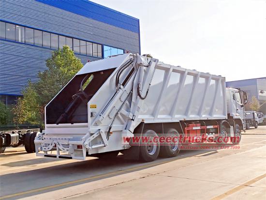 Сбор, прессование и разгрузка мусора — основные процессы, выполняемые мусоровозом с прессованным кузовом для выполнения санитарных работ. Во время сбора мусоровоз поднимает задний механизм, управляемый как со стороны водителя, так и с помощью заднего борта, стандартный мусорный контейнер объёмом 240/660 л к отверстию для загрузки. После загрузки мусора скользящая пластина опускается, скребок поворачивается и входит в мусор, закрываясь и вертикально соскребая его для первоначального уплотнения. Затем скользящая пластина поднимается, и скребок соскребает мусор в мусорный контейнер.