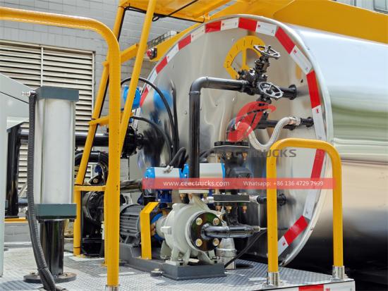 Технология двухслойной изоляции резервуара:В 3000-литровом асфальтовом резервуаре используется 80-миллиметровый слой асбестовой изоляции + внешняя пластина из матовой нержавеющей стали, а падение температуры в течение 8 часов составляет ≤12℃, что значительно снижает количество повторных нагреваний асфальта и снижает расход топлива. Встроенная конструкция волногасящей пластины предотвращает тряску и разбрызгивание асфальта во время транспортировки, что повышает безопасность.