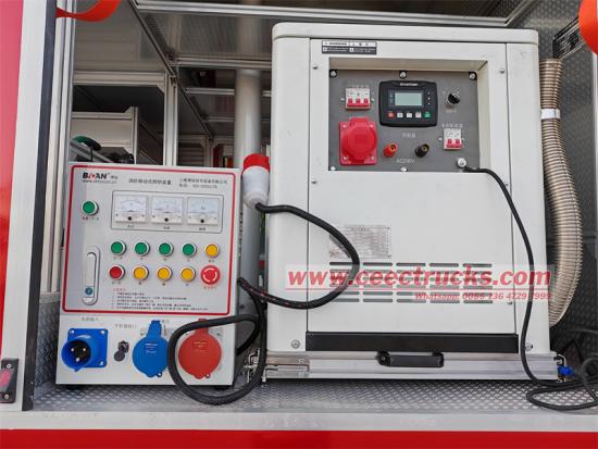 «Героем за кулисами» системы освещения является синхронный генератор мощностью 50 кВт и интеллектуальный контроллер SmartGen. Генераторная установка может непрерывно поставлять электроэнергию в течение 12 часов (при полной нагрузке), обеспечивая импульсную мощность для освещения, режущих машин, водяных насосов и другого оборудования; контроллер контролирует напряжение, ток и частоту в режиме реального времени, а также автоматически подает сигнал тревоги и отключает электропитание при возникновении ненормальных ситуаций для предотвращения перегрузки оборудования. Трехфазный/однофазный выключатель, установленный на коробке, похож на «электрического привратника», независимо управляя различными нагрузками для обеспечения безопасности использования электроэнергии спасательным оборудованием.