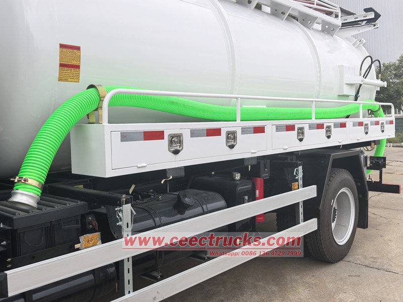 ♦ Одноосный септик Howo объемом 5000 литров в первую очередь использует вакуумный насос для создания отрицательного давления, который быстро всасывает сточные воды, грязь и осадок из септика через всасывающую трубу в герметичный резервуар.
