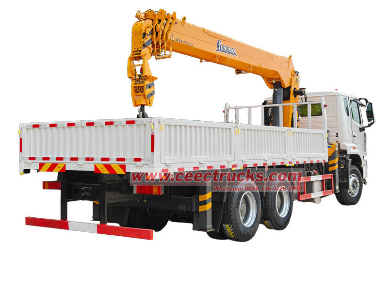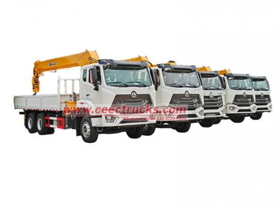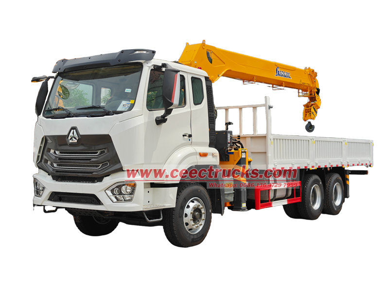 Грузовик Howo с подъемным краном грузоподъемностью 12 тонн, произведенный CEEC, подходит для строительства, логистики, инфраструктуры, горнодобывающей промышленности и других сфер. Автомобиль модифицирован на шасси HOWO NX, колесная база 4600+1400 мм. Он оснащен двигателем WEICHAI WP10.380E22 мощностью 380 л. с. и 10-ступенчатой коробкой передач HW19710. Верхняя часть представляет собой грузовой отсек размером 6500×2300×450 мм и кран XCMG GSQS300, который может поднимать 12 тонн. Кран может управляться ручными гидравлическими рычагами с обеих сторон для управления втягиванием и выдвижением аутригеров, а также втягиванием и вращением крана.