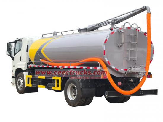 Автоцистерна Isuzu для сбора, перемещения и транспортировки фекалий, сточных вод и других отходов объемом 10 000 литров — это специальное транспортное средство, используемое для сбора, перемещения и транспортировки фекалий, нечистот и других отходов. Она сконструирована на базе шасси Isuzu FTR 4X cab, имеет колесную базу 4500 мм, кондиционер, USB, систему помощи при движении. Оснащена дизельным двигателем Isuzu 4HK1-TC60 мощностью 205 л.с., 4-цилиндровым рядным двигателем.