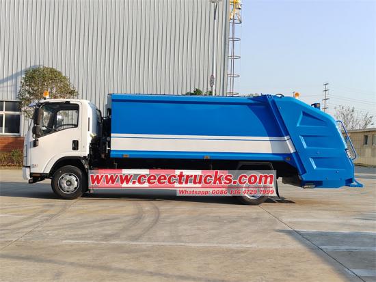 Грузовик с задним погрузчиком Isuzu Light Duty в основном состоит из шасси Isuzu, корпуса компактора, устройства сжатия, гидравлической системы и системы управления Во время рабочего процесса мусор загружается в корпус автомобиля, а затем сжимается через гидравлическую систему для достижения снижения мусора Дизельный двигатель Isuzu 4HK1-TC с 190 л.с., Isuzu MLD с 6-сдвижной коробкой с 6 вперед и 1 обратным корпусом с изогнутой формой, корпус бака с мусором 10 кубмиков, систему управления электрическим и гидравлическим клапаном.