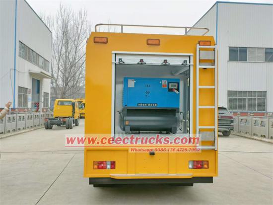 3. Мощная система электропитания: мобильная спасательная пожарная машина Isuzu оснащена импортным японским генератором модели HONDA SHT11500 со шкафом управления, который может вырабатывать мощность 11,5 кВт при напряжении 220 В и 380 В, что может удовлетворить потребности большого количества электрооборудования, работающего одновременно.