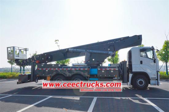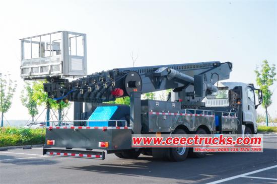 Aerial Work Platform Platform Isuzu FVZ Ультра-длинная рабочая рука 56 м и четырнадцатисторонняя синхронная телескопическая конструкция с девятью секциями имеет широкий и точный рабочий диапазон Оснащен несколькими устройствами безопасности для обеспечения безопасности операторов В то же время он обеспечивает множество режимов эксплуатации для удовлетворения различных операционных потребностей.