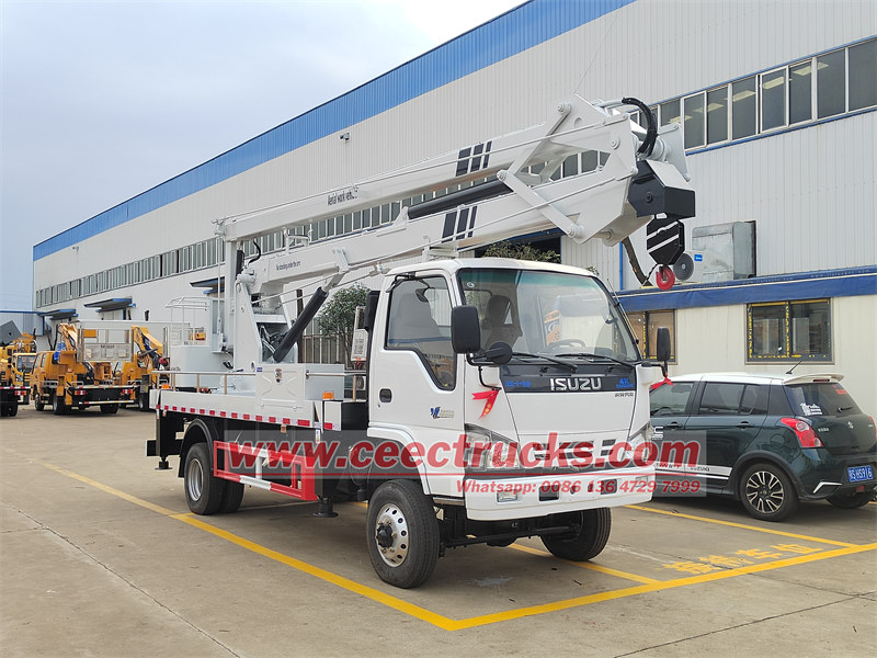 Грузовик Isuzu Manlift также называется AerialPlatformtruck Articulated Boomlift, TruckmounteAerialplatform, Aerialworkplatform, гидравлический подъемник, ковшерский грузовик, грузовик с ковшом, грузовик, настроенный на грузовике, воздушный подъемник для грузовика, телескопическая платформа, аэральная платформа, грузовик, настроенная на грузовике которые имеют воздушную высоту рабочей работы 14 м, 16 м, 18 м, 20 м, 22 м, 24 м, 26 м, 28 м, 30 м, 32 м И система вращения позволит непрерывное вращение на 360 градусов с системой безопасности, чтобы предотвратить внезапные падения в случае отказа.
