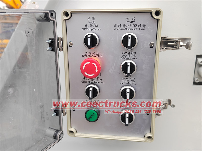 Грузовик Aerial Work Platform Platform Isuzu, оснащенный системой управления Siemens PLC, со стандартным английским языком, также может быть настроен с французским языком, арабским языком, российским языком и т Д Также сочетается с уровнем и гидравлическим для удобной работы Ниже показано ящик для управления на воздушной грузовике Isuzu
