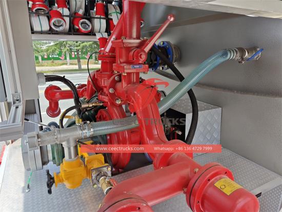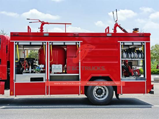 Customized dry chemical system with Nitrogen tankerЭто пожарный автомобиль с сухим порошком, построенный на шасси ISUZU NEW GIGA FTR. Он оснащен мощным двигателем ISUZU 4HK1-TC. Г 60 с рабочим объемом 5,19 л и выходной мощностью 205 л.с. Он использует режим привода 4X2 и оснащен 6-ступенчатой коробкой передач MLD-6. Максимальная скорость может достигать 95 км/ч, что позволяет адаптироваться к различным сложным дорожным условиям. Что касается системы пожаротушения, пожарная машина Isuzu оснащена резервуаром для хранения сухого порошка из углеродистой стали весом 1000 кг, а также резервуаром для воды объемом 3000 л и пенобаком объемом 2000 л. Четыре 80-литровых азотных баллона с расчетным давлением 15 МПа помогают системе пожаротушения сухим порошком. Пожарный насос приводится в действие валом отбора мощности с диапазоном давления 1,6-2,5 МПа и расходом 80-120 кг/с. Пожарная пушка имеет скорость распыления 60-100 кг/с и дальность 40-60 метров, что позволяет эффективно бороться с различными пожарами. Пожарная машина Isuzu GIGA также оснащена полным комплектом стандартного пожарного и спасательного оборудования, такого как лопаты, ломы, топоры и режущее оборудование, а также дополнительными лестницами и прожекторами.