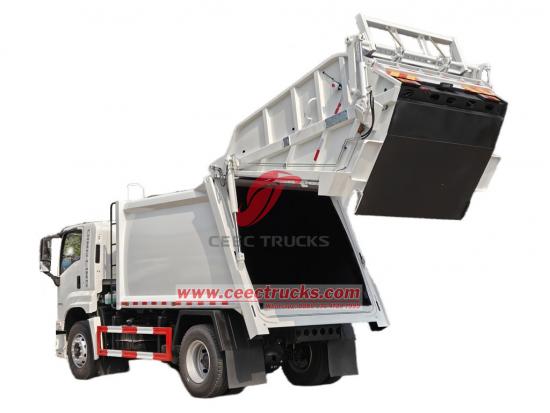 Недавно разработанный мусоровоз ISUZU 10cbm GIGA 4X с задней загрузкой особенно подходит для работы на узких полосах на Филиппинах: низкорасположенная конструкция механизма подвесного ковша не позволяет высоте переворота превышать крышу, что подходит для зон с ограниченной высотой, таких как подвалы. Устройство механизма заднего наклона совместимо со стандартными бочками объемом 240 л и 1100 л и небольшими мусоровозами для реализации интегрированной передачи классифицированного мусора. Он оснащен дизельным двигателем 4HK1-TCG60 мощностью 150 кВт/205 л. с. Объем уплотнителя составляет 10 кубических метров, с коэффициентом уплотнения ≥2,5. Время загрузки и разгрузки составляет ≤25 секунд. Грузовик оснащен интеллектуальной системой управления CAN-bus, поддерживающей как автоматические, так и ручные операции, и гидравлической системой с максимальным давлением 18 МПа.
