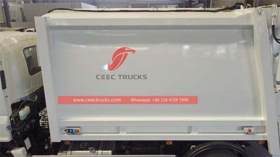 После многократных консультаций с европейскими клиентами специалисты CEEC усовершенствовали конструкцию заднего загрузочного ковша и входного отверстия кузова, благодаря чему мусор, высыпаемый мусоровозом-уплотнителем Isuzu GIGA, изначально падает относительно высоко в средней и задней части кузова. При движении вперёд механизм прессования не только проталкивает мусор горизонтально, но и эффективно уплотняет его вниз, полностью используя высоту и объём кузова, что значительно повышает эффективность загрузки и степень уплотнения.