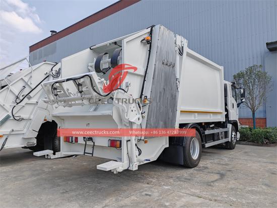 Основой мусоровоза с задней загрузкой является компрессионный механизм (скребки и скользящие пластины), который уплотняет мусор. Мусоровоз Isuzu GIGA F-serious 16CBM обычно движется возвратно-поступательно от задней части кузова к передней.