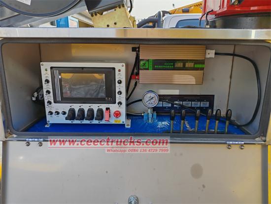 ● Автомобиль оснащен 7-дюймовым ЖК-экраном для отображения длины стрелы, угла подъема, высоты платформы, рабочей высоты и т. д. в режиме реального времени;