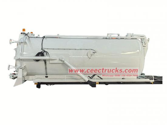 Кузов иссеченной автоцистерны с насосом MORO (также называется верхним кузовом илососной машины объемом 10 000 литров, надстройкой автоцистерны с вакуумным насосом для шлама, комплектом для ассенизационной машины с отсосом ливневой канализации, верхним кузовом вакуумной ассенизационной машины, надстройкой автоцистерны для удаления фекалий) Устанавливается на шасси для очистки и сбора жидкостей, таких как грязная вода, ил, септические жидкости, сырая нефть, а также твердых частиц, таких как мелкие камни и кирпичи. Подходит для очистки канализации, выгребных ям, сточных ям, луж и т. д. Широко применяется в сфере охраны окружающей среды и санитарии.