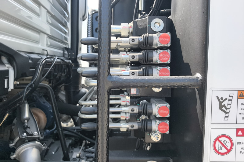 ● В уплотнителе грунта с задней загрузкой Shacman используются электрогидравлические клапаны управления и система управления на базе ПЛК, сочетающая преимущества электронного и гидравлического управления. Интегрированное электрогидравлическое управление эффективно решает проблемы взаимодействия между гидравлической и электрической системами, повышая эксплуатационную надежность.