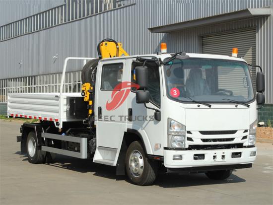 ISUZU НПР двухместная каюта грузовик с складной кран |